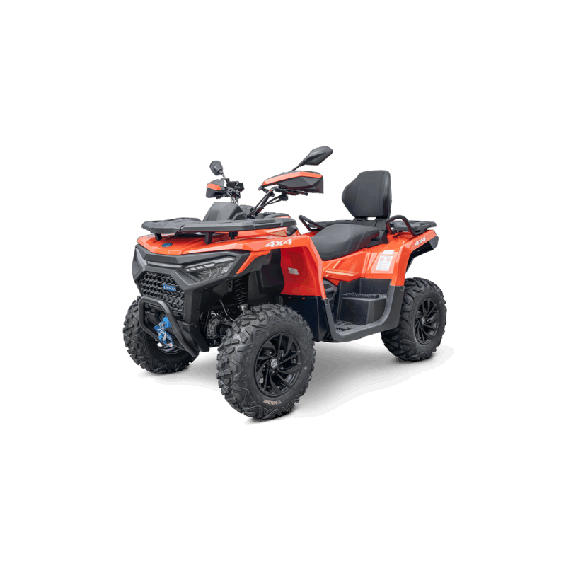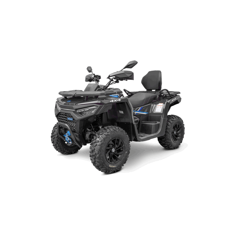 Elektryczna wyciągarka 3000 lbs z liną syntetyczną, elektryczne wspomaganie układu kierowniczego EPS, homologowane urządzenie holownicze, 12" aluminiowe felgi designerskie, markowe opony Bulldog 25", kompozytowe bagażniki z przodu i z tyłu, osłony klamek i dłoni, oświetlenie Full-LED, pełno kolorowy 7" wyświetlacz TFT, gniazdo 12 V, port USB, osobne podwyższone siedzenie pasażera z oparciem pleców, uchwyty o antypoślizgowej powierzchni.