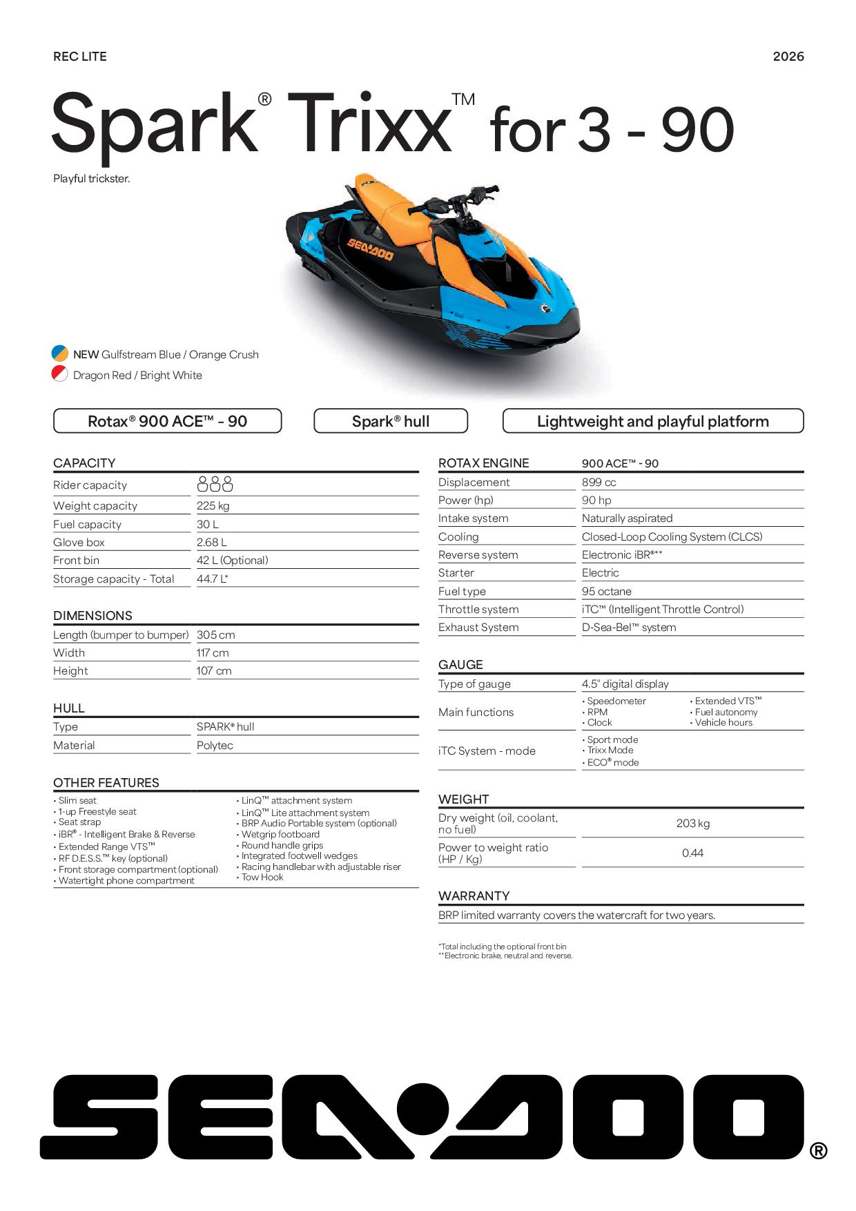 Model Spark Trixx 2026 jest przeznaczony dla poszukiwaczy wrażeń, którzy chcą się wyróżniać i czerpać z jazdy jeszcze więcej radości. Włącz tryb Trixx i popisuj się wodnymi trikami na profesjonalnym poziomie. Wystarczy jedna przejażdżka, aby się zakochać.